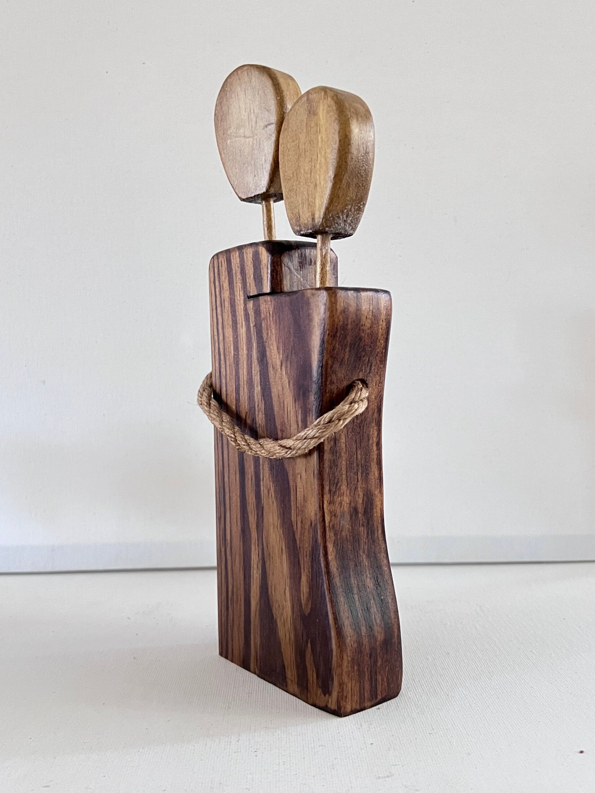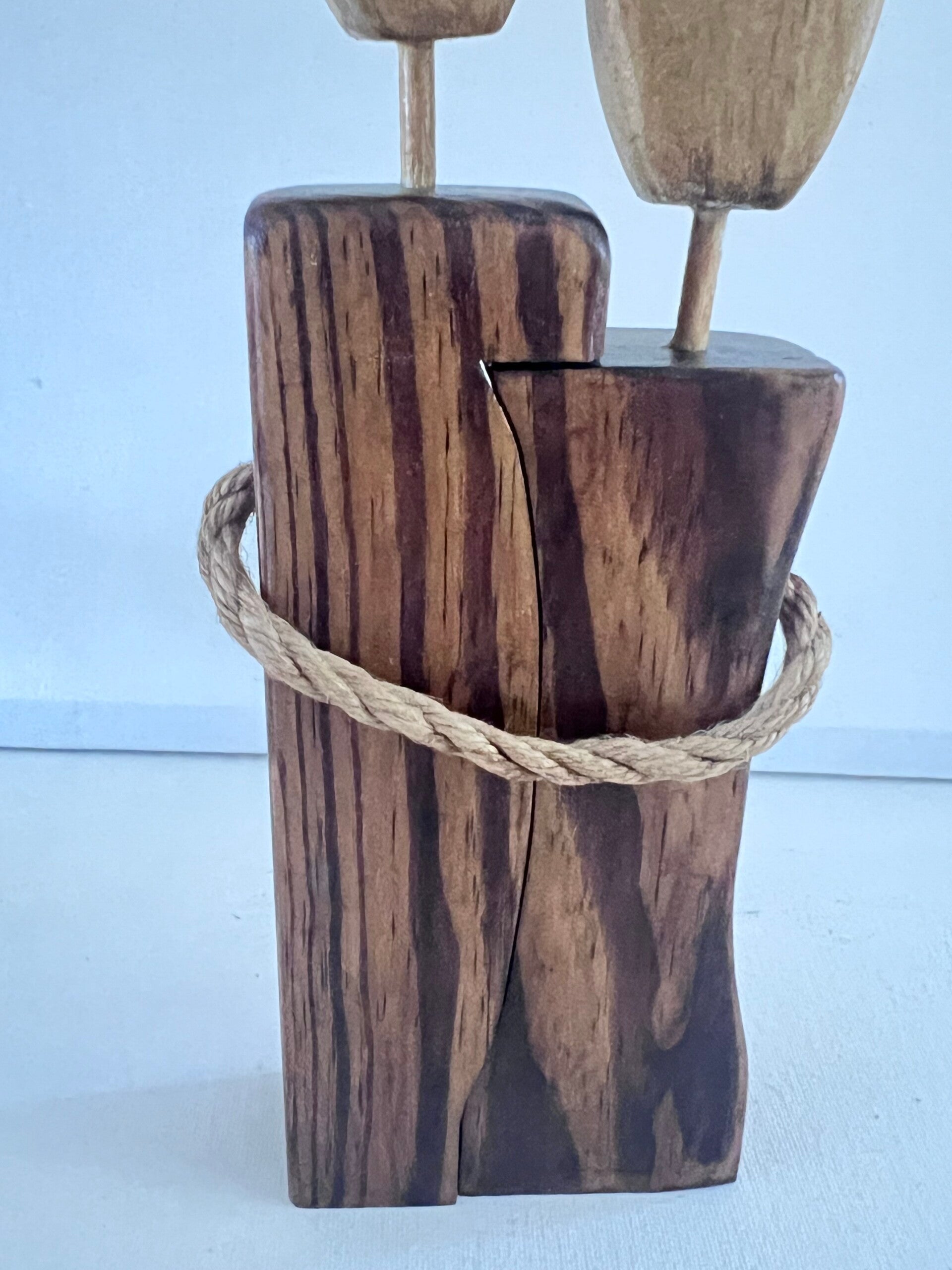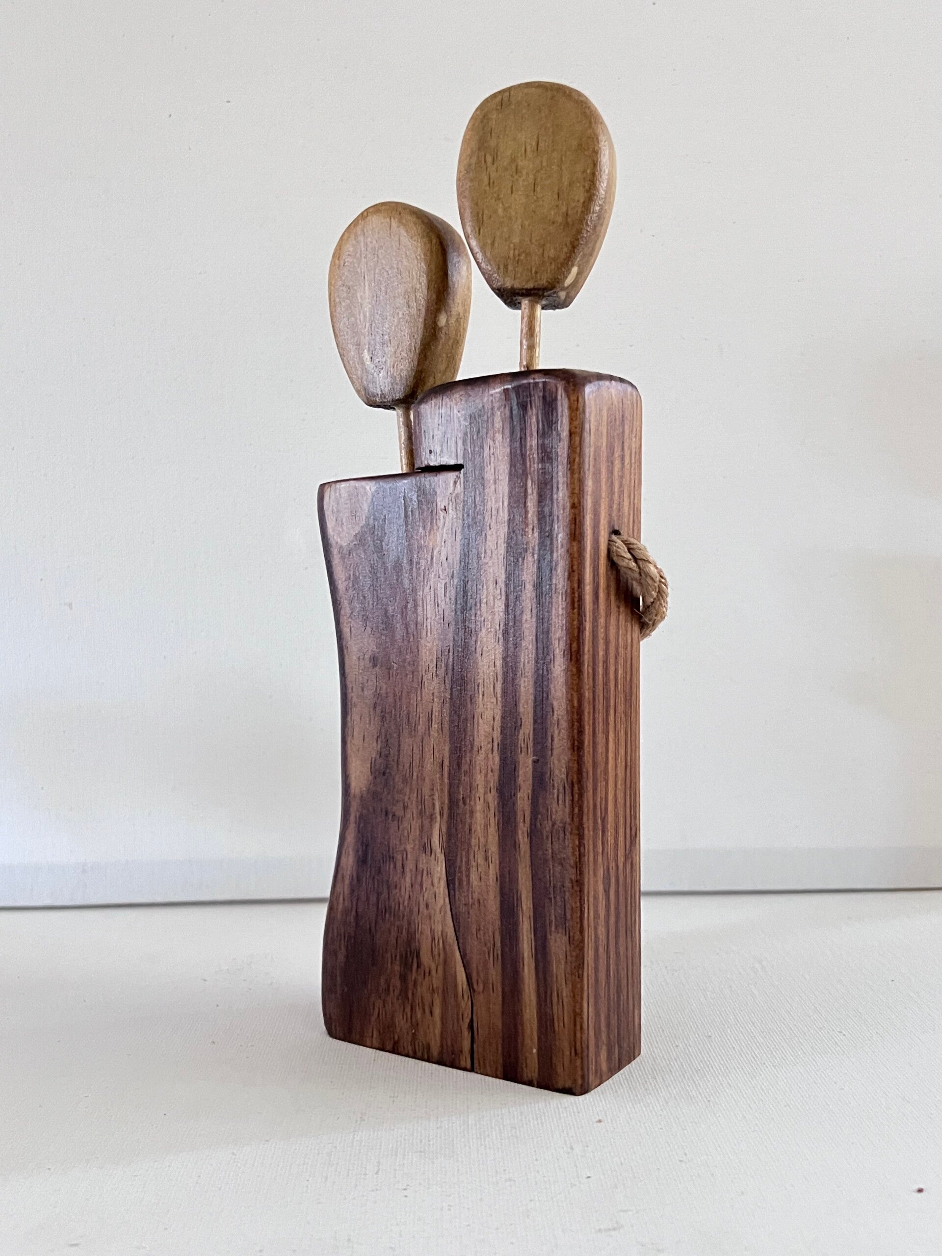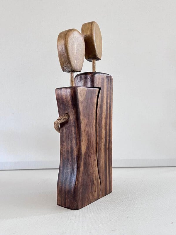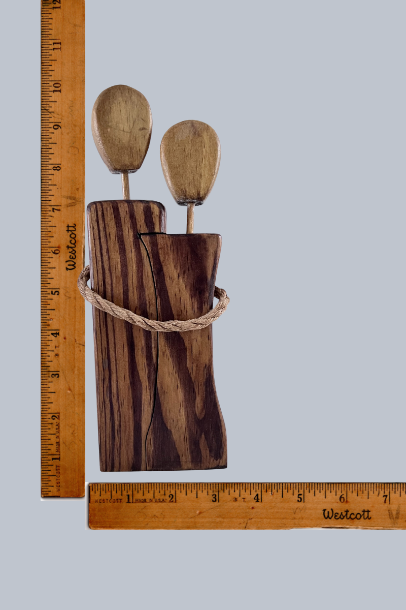 - Rustic Rope Bond: The figures are connected by a rustic rope, representing affection. The wood's rich, warm tones display beautiful grain patterns, adding a charming, organic feel. ๐งถ