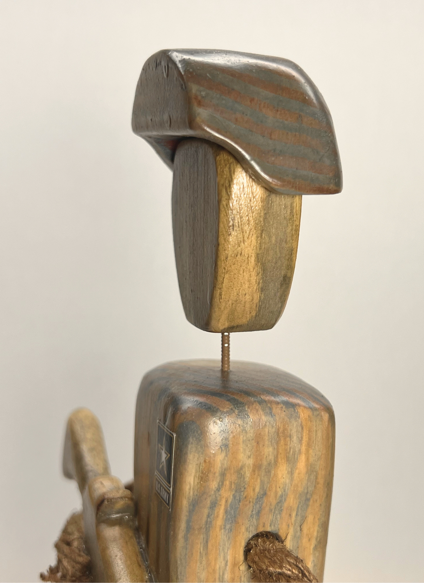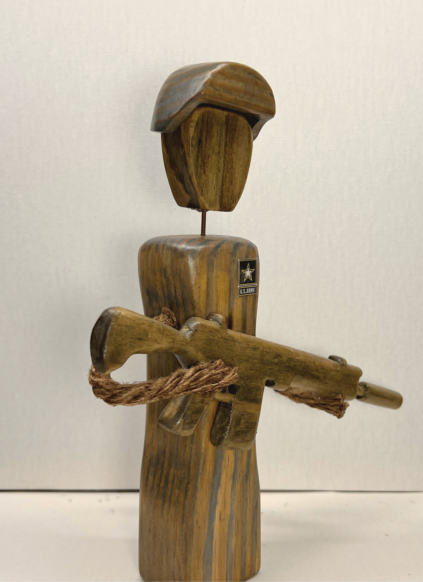 Army Soldier female hand carved wood figurine