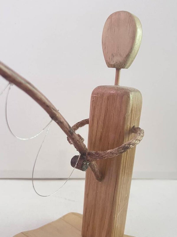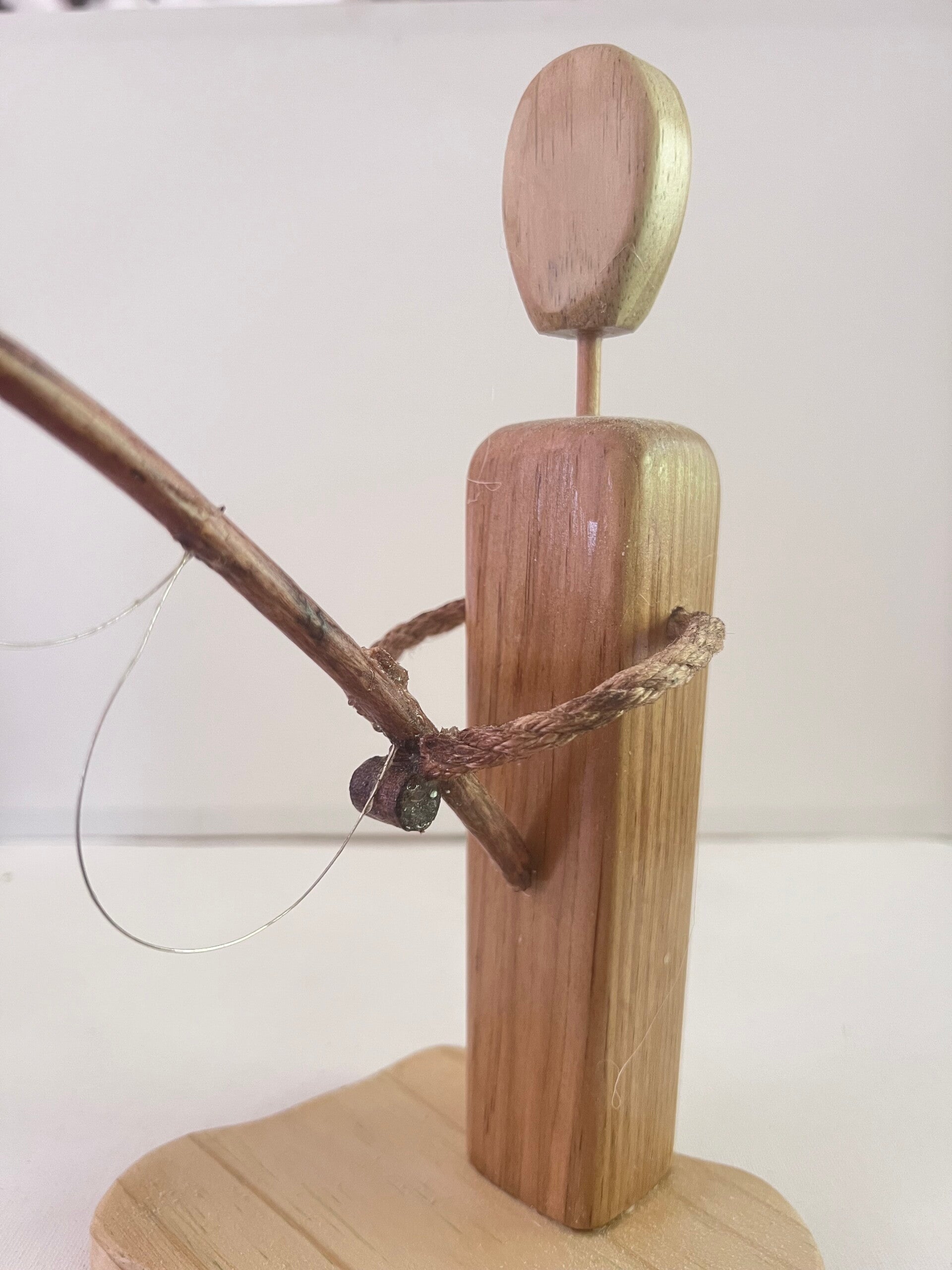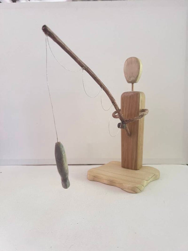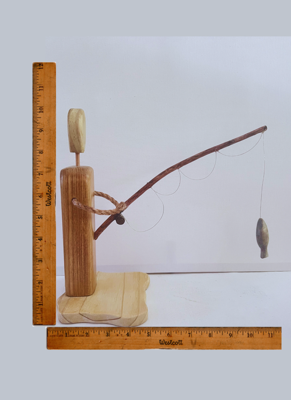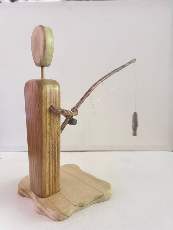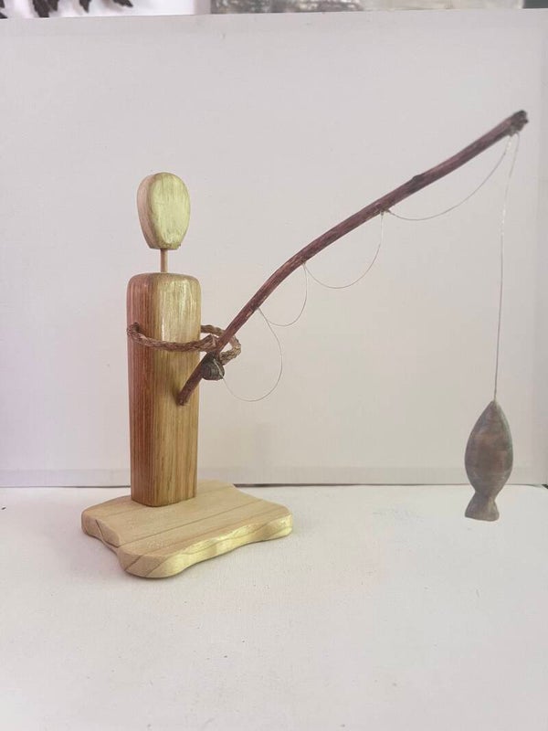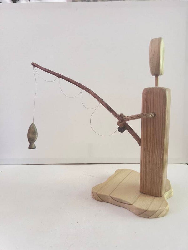 Enhance your space with the calming presence of our wooden fisherman figurine. This handcrafted piece showcases an angler in action, embodying the peacefulness of fishing.